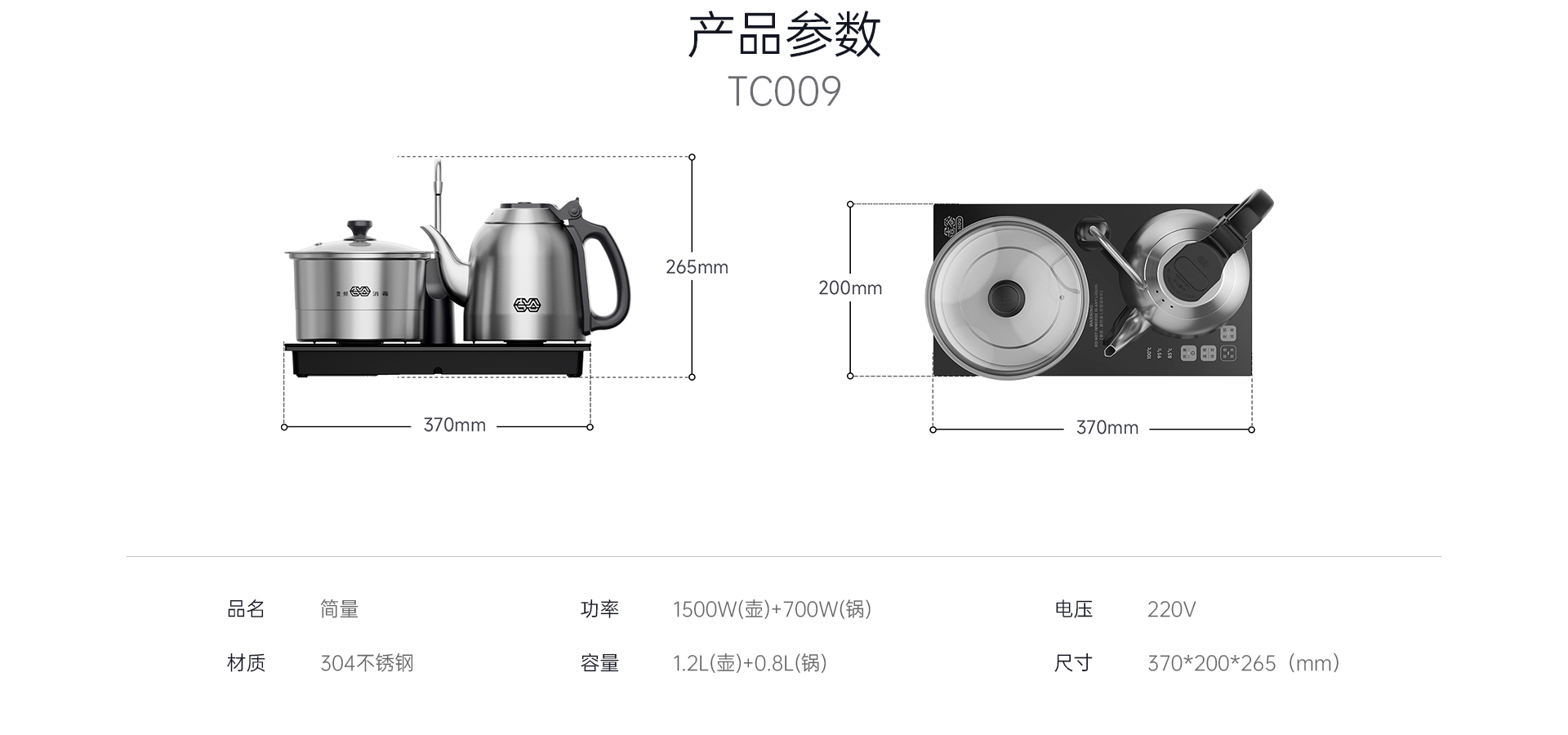 - 功率:1500W(壺)+700W(鍋)